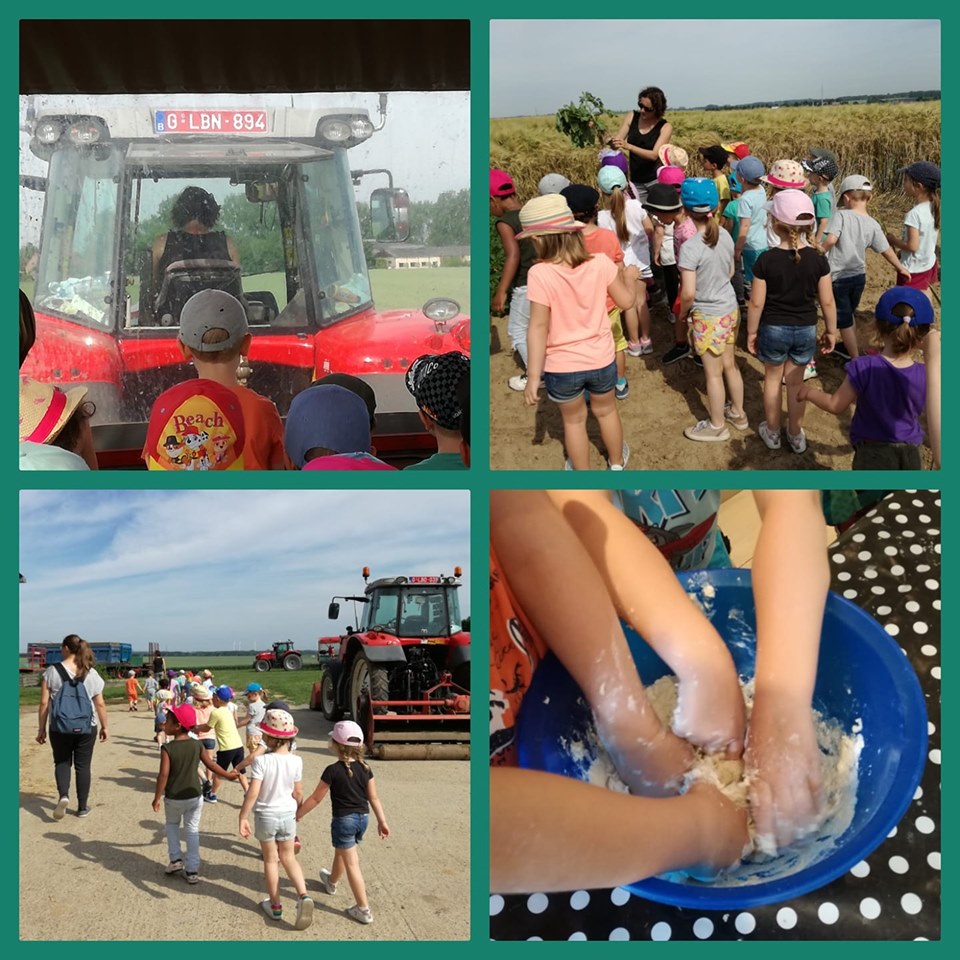 Magnifique journée passée dans une ferme pédagogique : ballade en tracteur dans la campagne hesbignonne, découverte des cultures, fabrication de pain et de beurre, nourrissage des animaux poules, cochons, chèvres, lapins et moutons. Et pour terminer, chasse au trésor et dégustation de fraises dans le potager, le tout sous un soleil franc et généreux !
