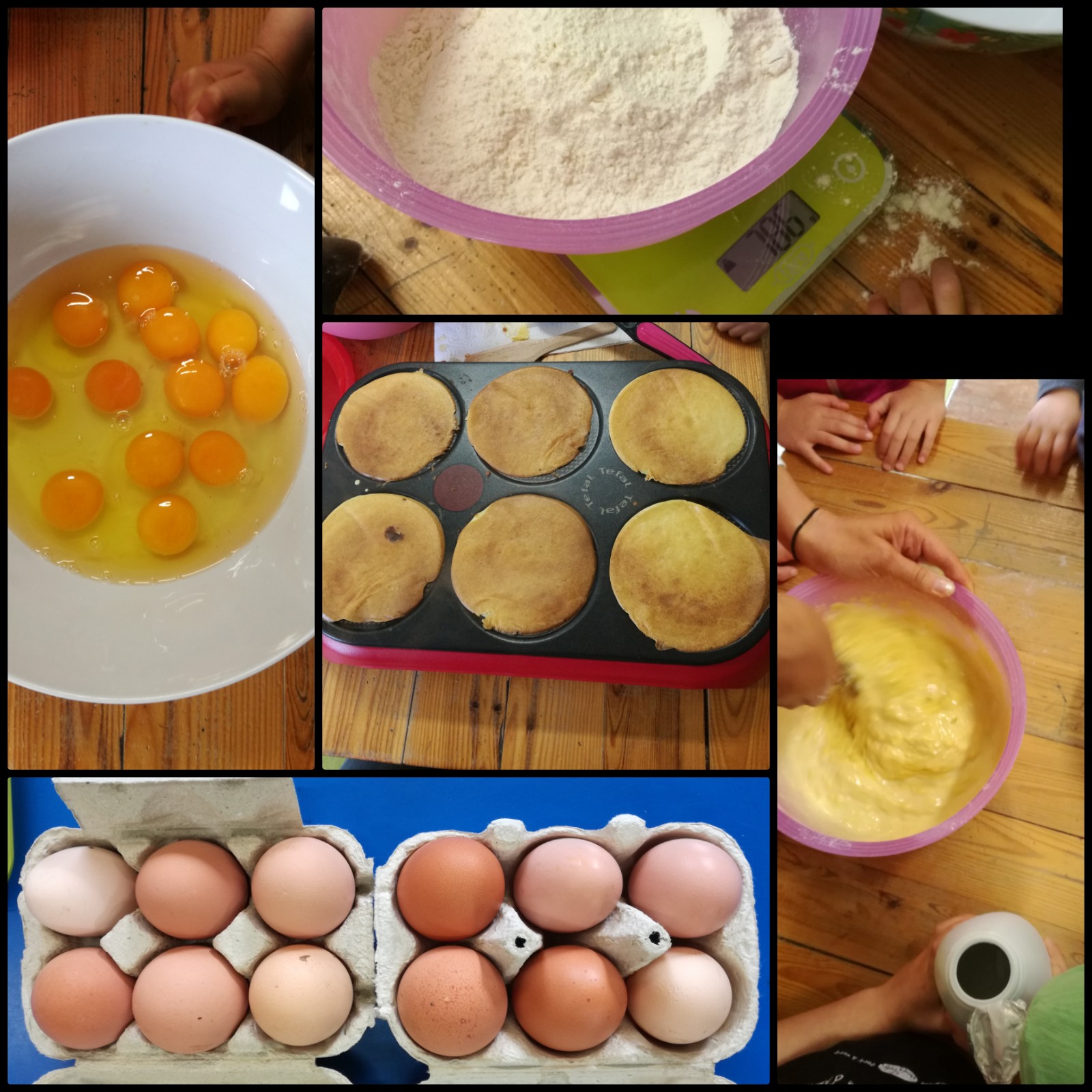 Nous avons pesé, versé, cassé les 12 œufs, mélanger de la farine, du lait,